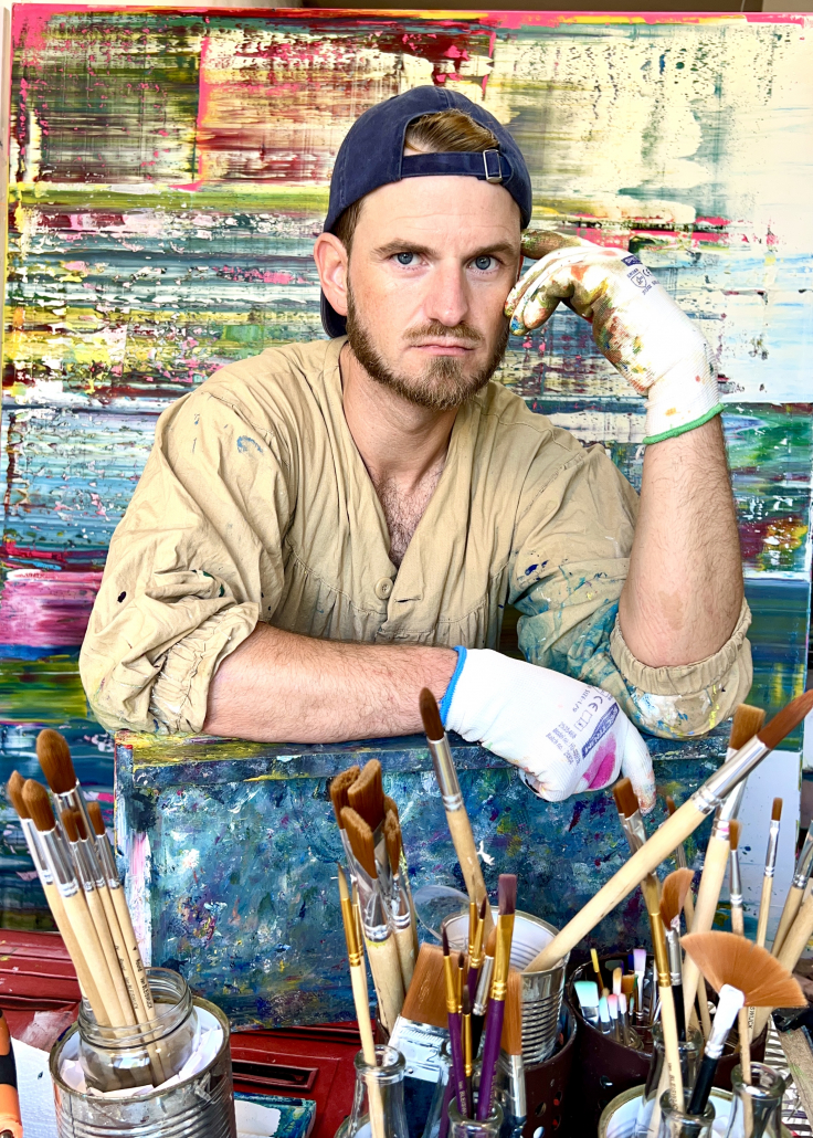 Without any formal training, the German-Danish artist has developed a distinctive visual language that blends abstract expressionism, pop art and street art. His large-format works are emotional landscapes of colour in which layers, luminosity and textures merge into multi-layered narratives. Each series is a new experiment – from shimmering neon pigments to earthy metallic tones, from vast coastal landscapes to the invisible mechanisms of human emotions.