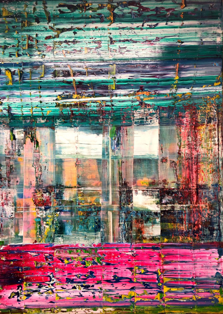 His current series of works, ABSTRACTED CHEMISTRY (2025), turns the gaze inward: it makes the invisible, molecular mechanisms of human emotions visible. Acrylic and oil combine to form multi-layered surfaces in which Bo Larsen’s characteristic squeegee technique exposes deep layers – a visual metaphor for the complexity of the inner self.