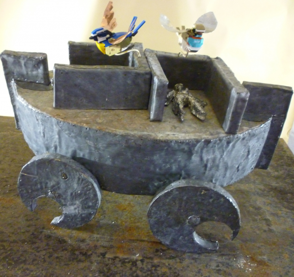 Die Arbeit zeigt einen männlichen und einen weiblichen Körper. Diese Körper liegen in zwei verschiedenen und getrennten Räumen, es gibt aber rundherum genügend Platz, so dass die Körper, wenn auch nur theoretisch, zusammentreffen können. Die ganze Szene findet auf einem großen Schiff mit Rädern statt, die Darstellung des Reisens durch Raum und Zeit. Zwei Vögel begleiten die Körper als Darstellung der ätherischen Seelen der Körper. Die Trennung der Körper ist eine Andeutung auf das Thema der Ausstellung, es geht um Verschiedenheit und Suche.