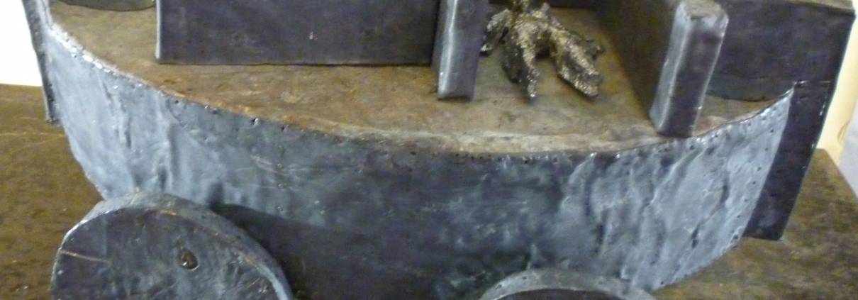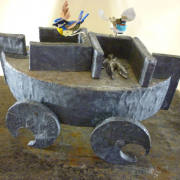 Blei auf Holz, kleine Modelle aus Plastik,