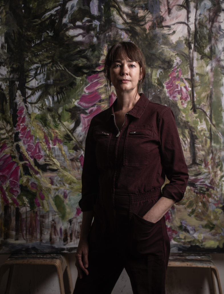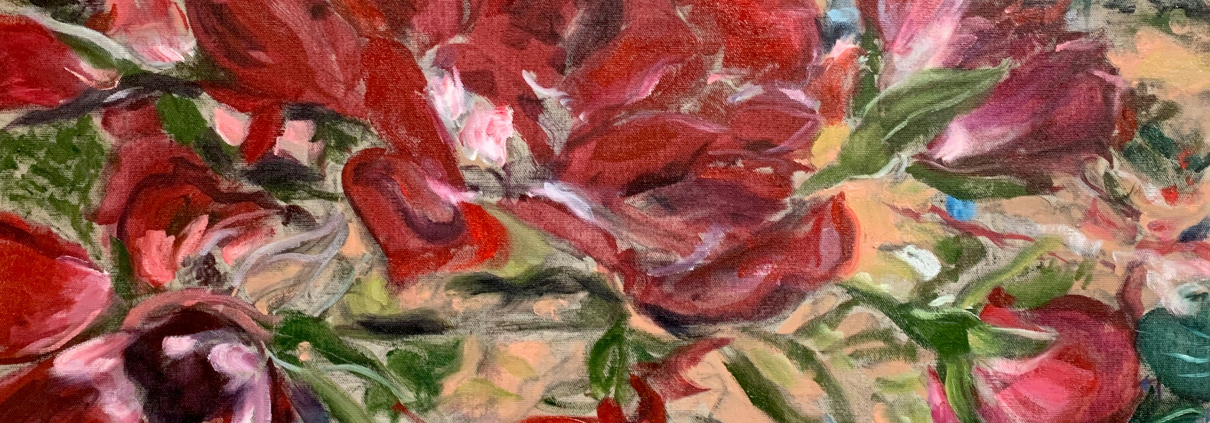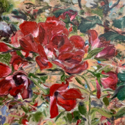 In den Arbeiten ihrer Ausstellung Wild Claims begannen die dargestellten Wesen, sich malerisch mit der Natur zu verbinden. Auf der Suche nach größerer Abstraktion hat sich diese Entwicklung in den neuen Bildern der Künstlerin fortgesetzt – die Figuren haben sich aufgelöst, sind jedoch weiterhin als energetische Präsenz spürbar. So auch in Love in the Park, das die Künstlerin für die Ausstellung Vertical Horizons ausgewählt hat. Körper und florale Formen verschmelzen, lösen sich auf zu abstrakten Farbflächen, in denen das Lebendige weiterwirkt. „Die Bacchanalien – Das Werden … Selzer interessiert sich für diese überschwängliche bacchantische Kraft, die sie in eine allgegenwärtige Pflanzenwelt verwandelt, die sie in ein Feld aus Farbenergie auflöst.“ Heike Fuhlbrügge – Der Weg ins Grenzenlose